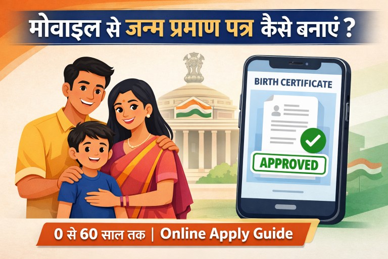 Birth Certificate (जन्म प्रमाण पत्र) भारत में सबसे जरूरी सरकारी दस्तावेजों में से एक है। चाहे नवजात बच्चा हो या 60 साल का व्यक्ति, आज के समय में सिर्फ मोबाइल फोन से ऑनलाइन जन्म प्रमाण पत्र बनवाया जा सकता है। इस आर्टिकल में हम आपको पूरी प्रक्रिया आसान भाषा में समझाएंगे।